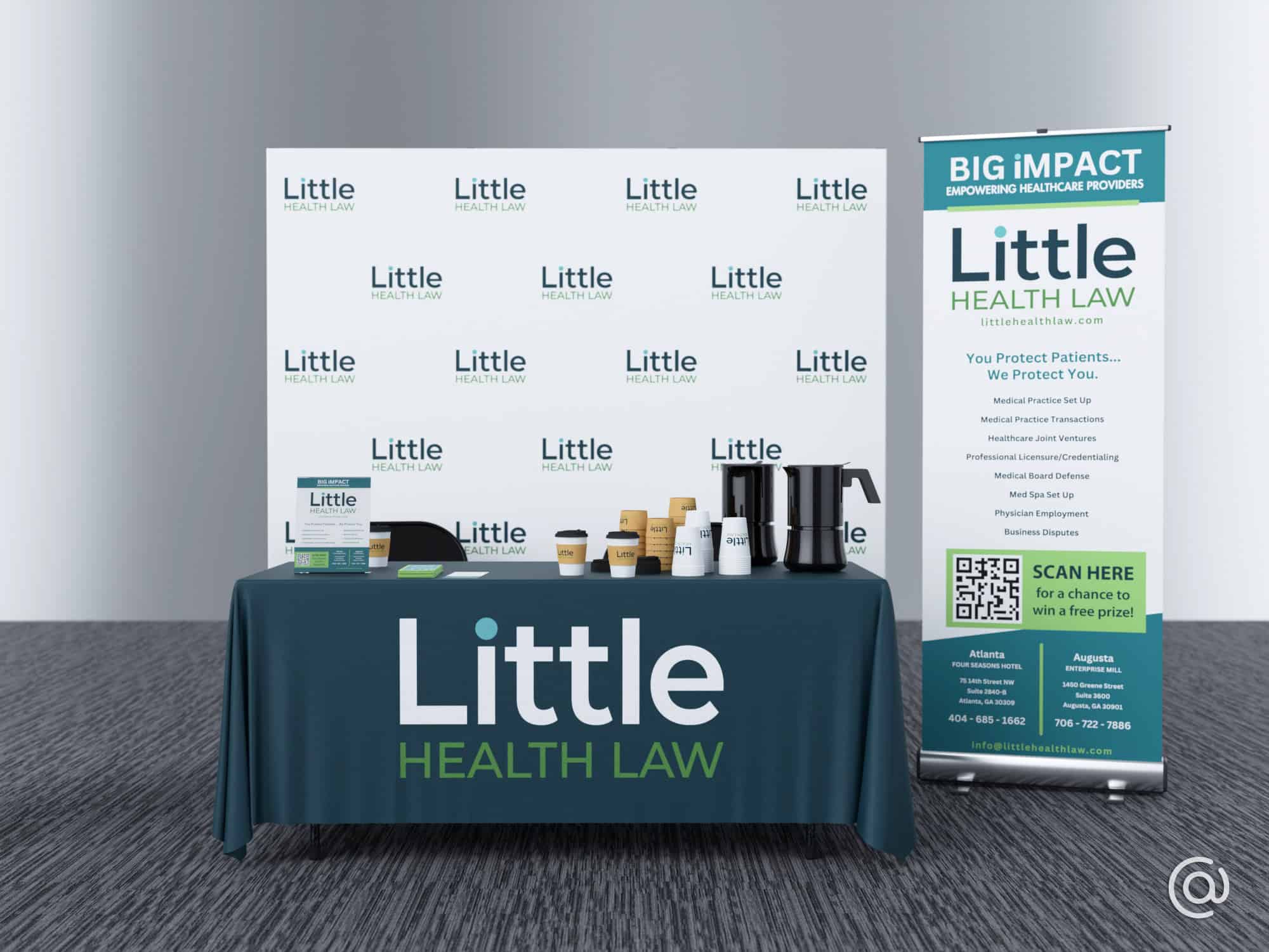 Cre@te designed a clean, modern trade show booth that helped Little Health Law stand out and connect effortlessly with attendees.